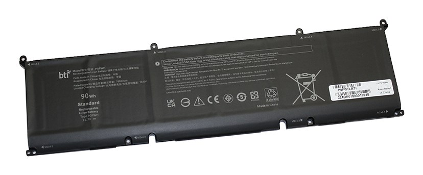 BTI 6 cell P0FWH replacement battery for ALIENWARE M16 R2. Number of batteries included: 1 pc(s). Battery capacity: 7692 mAh, Battery capacity: 90 Wh, Battery technology: Lithium-Ion (Li-Ion), Battery voltage: 11.7 V, Product colour: Black
