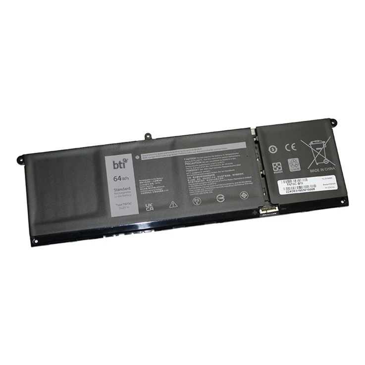 BTI 4 cell TN70C replacement battery for DELL VOSTRO 13 (5320) VOSTRO 13 (5310) LATITUDE CHROMEBOOK 14 5430 INSPIRON 16 (7640) 2-IN-1. Number of batteries included: 1 pc(s). Battery capacity: 4000 mAh, Battery capacity: 61 Wh, Battery technology: Lithium-Ion (Li-Ion), Battery voltage: 15.2 V, Product colour: Black