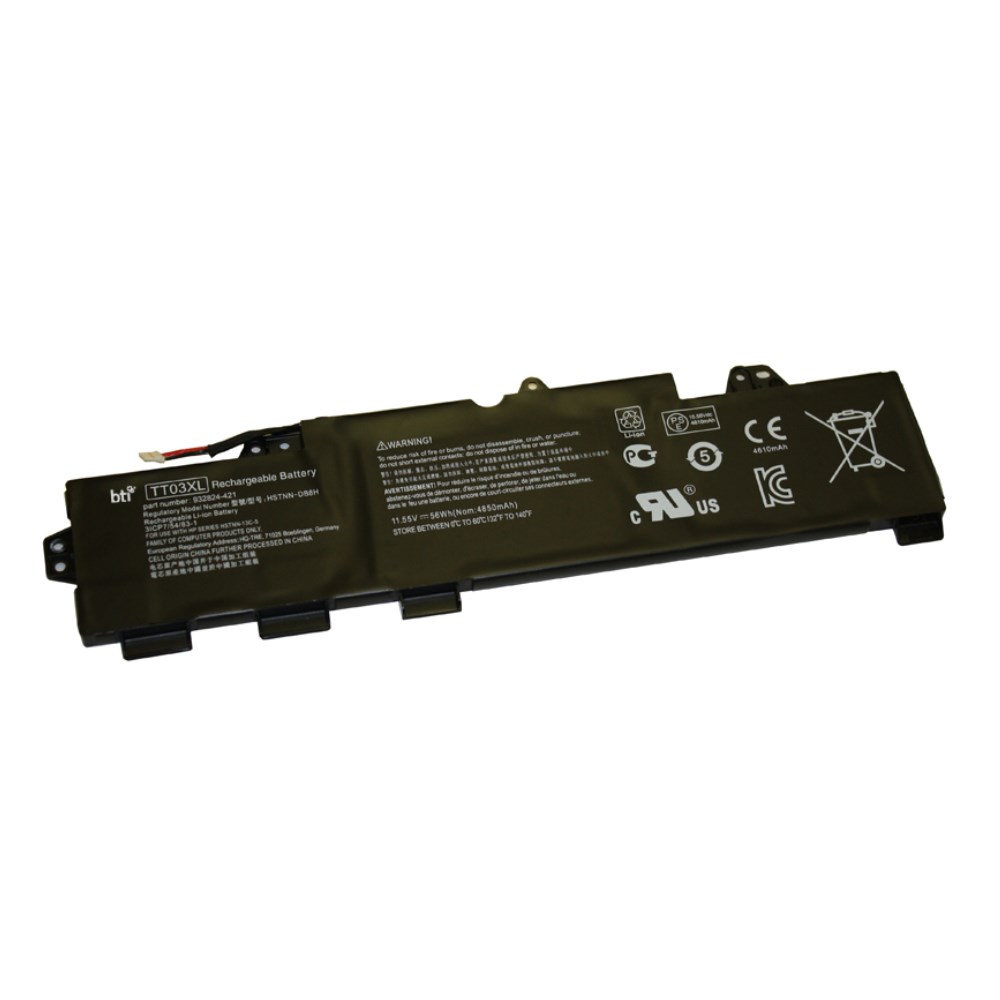 BTI Replacement Battery for HP Elitebook 755 G5 850 G5 / Zbook 15U G5 replacing OEM part numbers TT03XL 933322-855 932824-421 TT03056XL-PL // 11.55V 4850mAh 56Whr
