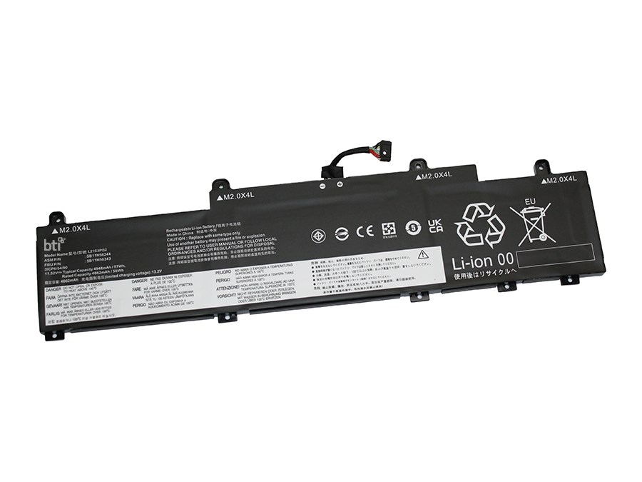 BTI SB11H56250 compatible 47Wh 3-cell battery for LENOVO THINKPAD L14 G4. Number of batteries included: 1 pc(s). Battery capacity: 4080 mAh, Battery capacity: 47 Wh, Battery technology: Lithium-Ion (Li-Ion), Battery voltage: 11.52 V, Product colour: Black