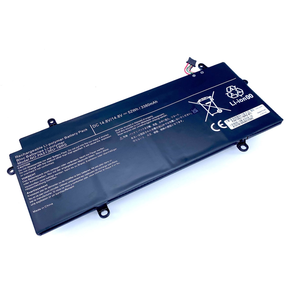 BTI Replacement 4 cell battery for Toshiba Z30-A Z30-C replacing OEM part numbers PA5136U-1BRS // 49Whr. Number of batteries included: 1 pc(s). Battery capacity: 3510 mAh, Battery capacity: 52 Wh, Battery technology: Lithium-Ion (Li-Ion), Battery voltage: 14.8 V, Product colour: Black