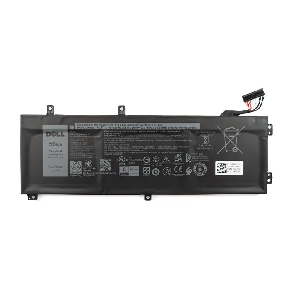 Dell V0GMT. Number of batteries included: 1 pc(s). Battery capacity: 4600 mAh, Battery capacity: 56 Wh, Battery technology: Lithium-Ion (Li-Ion), Battery voltage: 11.4 V, Product colour: Black