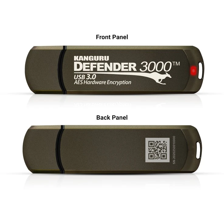 iStorage Kanguru Defender 3000™ SuperSpeed USB 3.0 256 GB| Secure Flash Drive | FIPS 140-3 Level 3 pending, FIPS 140-2 Level 3 Certified | AES-XTS 256-bit Hardware Encryption | TAA Compliant|