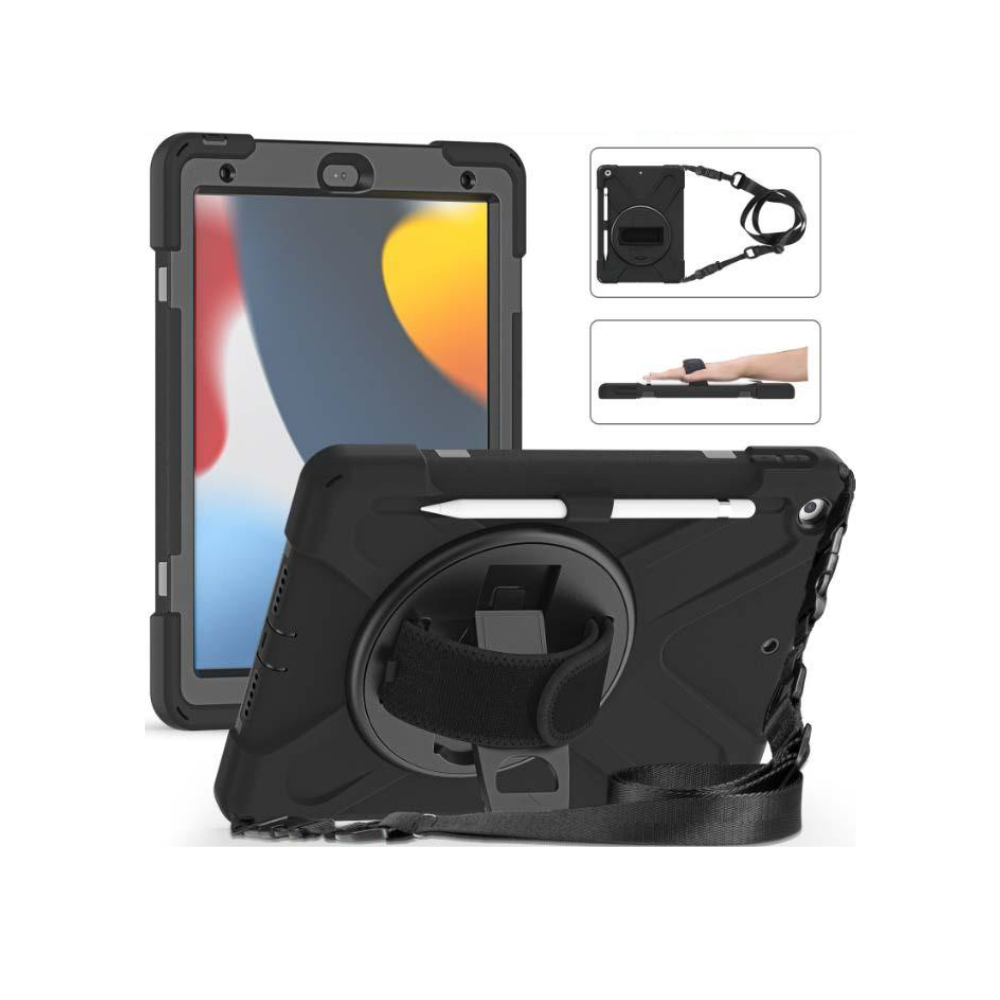 MAXCases Shield Case for iPad 7/8/9th gen (10.2in) with Hand strap shoulder strap & screen protector (Black)